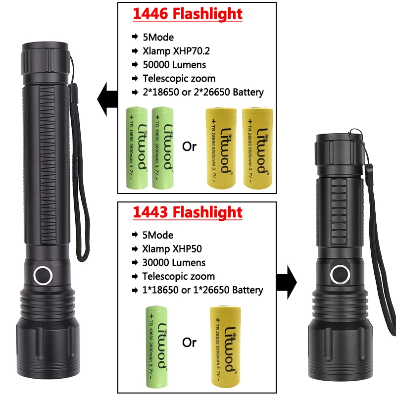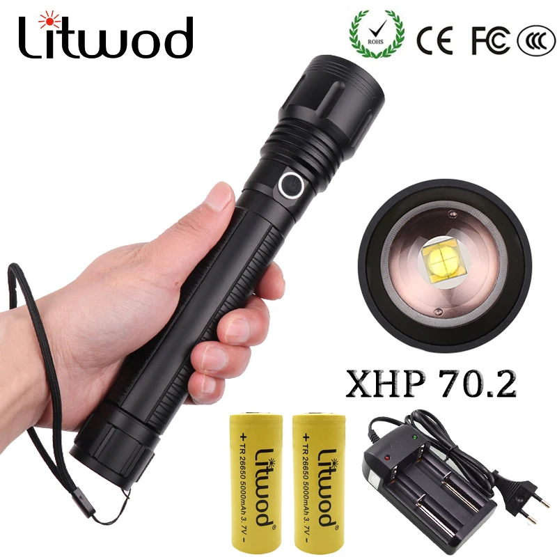 BEST QUALITY Litwod Z351446 LED flashlight CREE XHP70.2 & XHP50 high powerful 50000LM Tactical waterproof torch