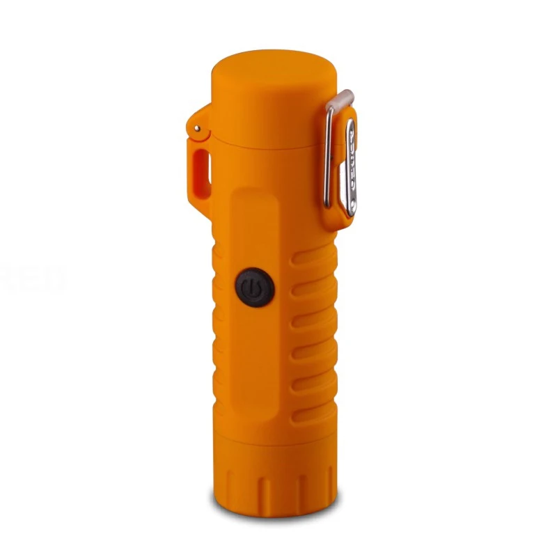 HIGH QUALITY Botique-Multifunctional Usb Waterproof Double Arc Charging Lighter With Flashlight Led Lamp(Orange)